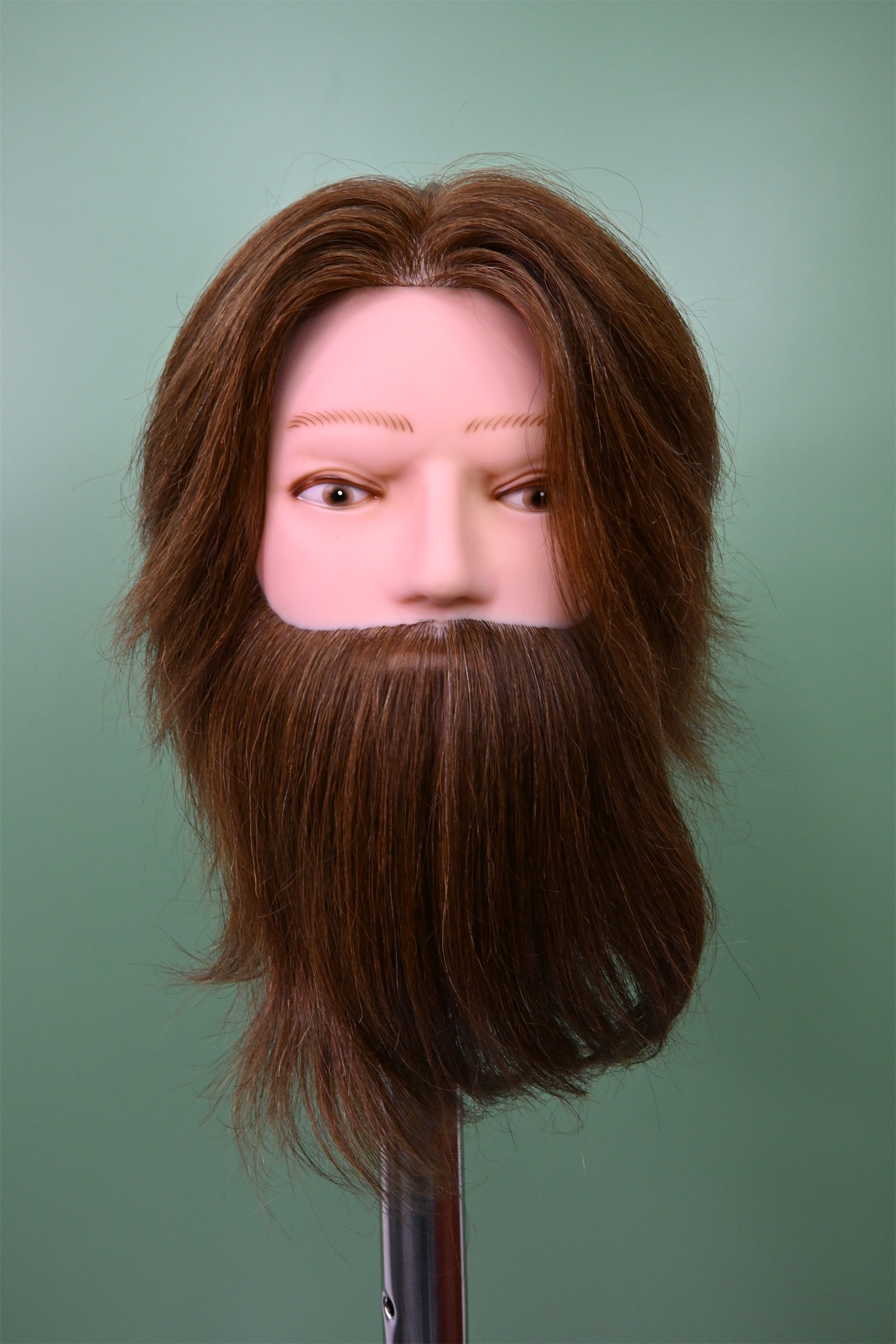 Он также предлагает два самых распространенных мужских цвета волос: натуральный черный и коричневый , а волосы уложены вручную в соответствии с естественным направлением роста реального человека! Разделение волос следует направлению их роста, что делает расчесывание и секционирование легким, как при стрижке настоящей головы. Форма для головы даже имеет отверстия внизу, чтобы можно было прикрепить стандартные зажимы и подставки из парикмахерских.